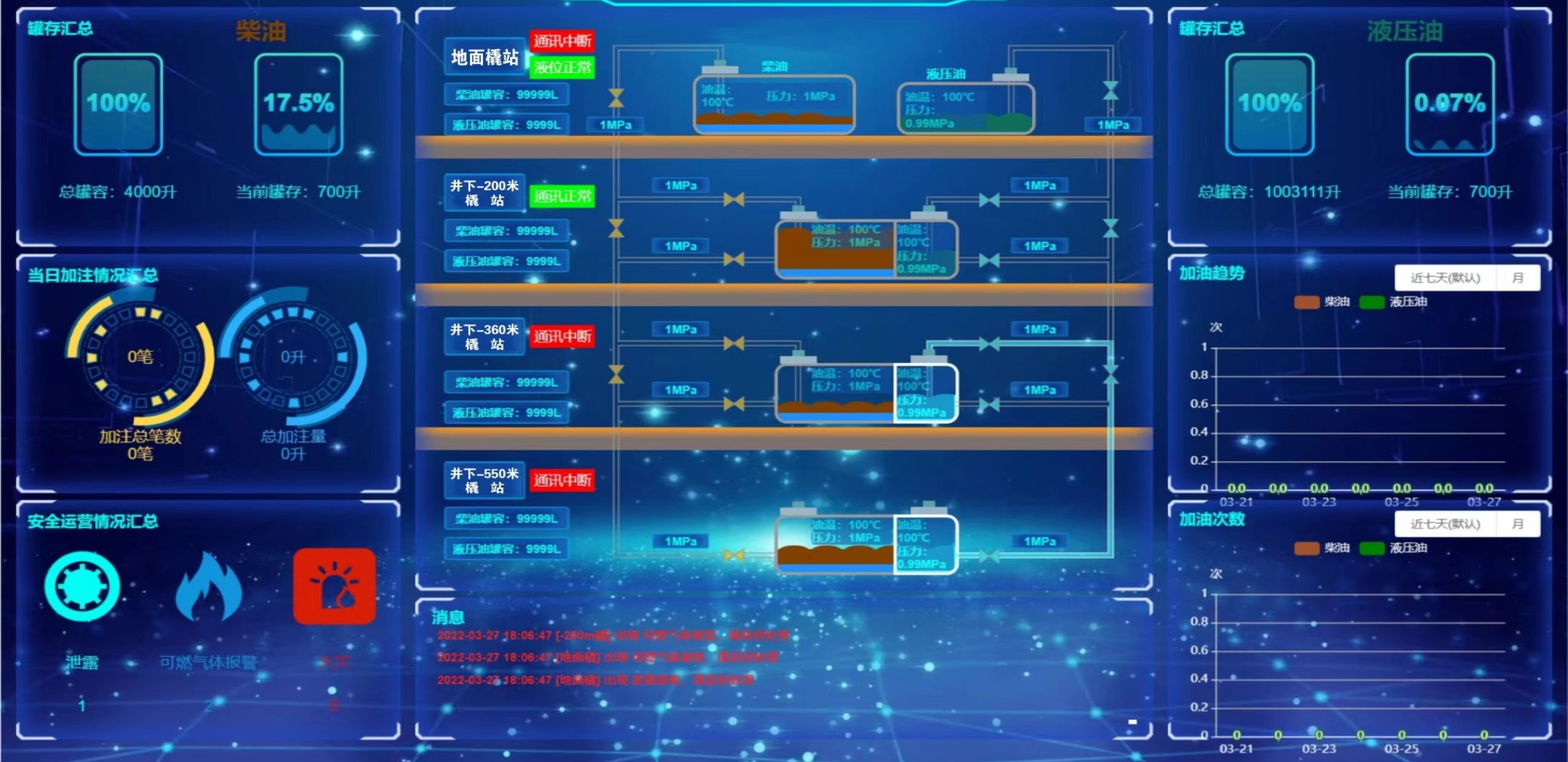 凡口鉛鋅礦井下680米智能供油系統(tǒng) 目前正有序施工中, 預(yù)計9月底完工并投入使用。該項目為全國首創(chuàng), 由韶關(guān)企業(yè)進行技術(shù)攻堅 并申請多項國家專利, 擬申報吉尼斯世界紀(jì)錄 “全球最深的智能供油系統(tǒng)”。 凡口鉛鋅礦井下智能供油系統(tǒng) 需在地面設(shè)置橇裝加油裝置, 并分別在地下 330米、480米和680米處 建設(shè)智能化供油系統(tǒng), 通過鉆孔鋪設(shè)輸油管線, 將油品從地面輸送到井下。 地下330米智能加油點, 目前已進入收尾階段, 現(xiàn)場有兩根 從地面裝置接下來的輸油管, 用于工程車加油, 另一邊也有兩根輸油管輸送到 地下480米和680米的智能加油點。 別看油管很細,鉆孔不大, 但施工難度并不小, 全長3千多米的輸油管, 垂直打孔偏差不能超過1米。 作為亞洲最大的 單體鉛鋅銀礦生產(chǎn)基地, 凡口鉛鋅礦 有井下工程車輛和設(shè)備100多臺, 井下用油量大。 井下智能化供油系統(tǒng)啟用后, 不僅解決井下用油安全、環(huán)保風(fēng)險, 同時降低生產(chǎn)用油成本, 推進凡口鉛鋅礦建設(shè)智能化礦山, 實現(xiàn)“無人開采”。 如果鉆孔偏差太大,就找不到鉆下來的孔,影響輸油管道的布設(shè),增大成本。3千多米有5千多個焊接點,所有的焊接口都要達到高壓管道的焊接要求,這個項目是全國首創(chuàng),在全國所有礦山企業(yè)中,我們是首次使用通過輸油管道往井下輸油,并且實現(xiàn)智能控制的方案。 這個月底把地下330米加油點完工,開始加油,9月底把底下480米和680米開通使用。希望通過這個項目打造創(chuàng)新科技的韶關(guān)樣板,把先進的經(jīng)驗和技術(shù)推廣到全省、全國乃至全球。